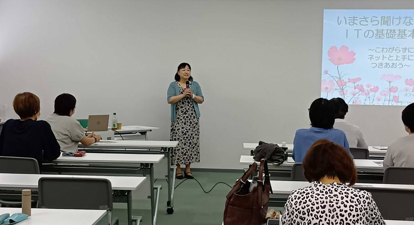 セミナーの内容は、『いまさら聞けないITの基礎基本 ~こわがらずにネットと上手につきあおう~』というテーマで、ITの基本となること(OSの種類やアプリなど)と、ネットやSNSなどの危険性、その対策などについてお話させて頂きました。